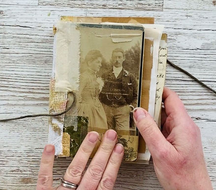 You’ll explore: photos + ephemera • tissue prints for soft layering • vintage prints (digital or found) • finishing with crackle glaze or encaustic wax.
